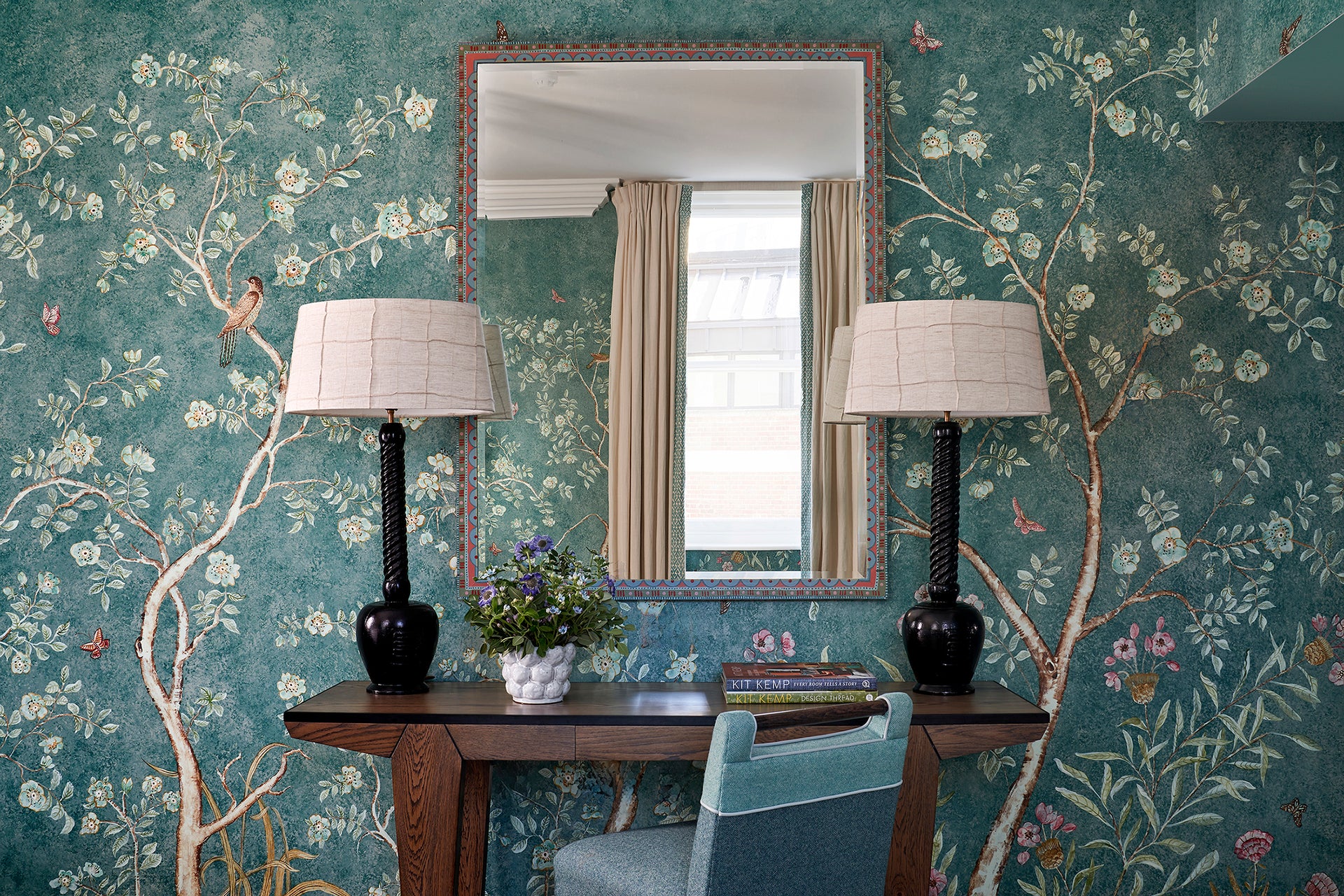 Inspired by Chinoiserie landscapes, discover the playful elegance of Songbird wallpaper.